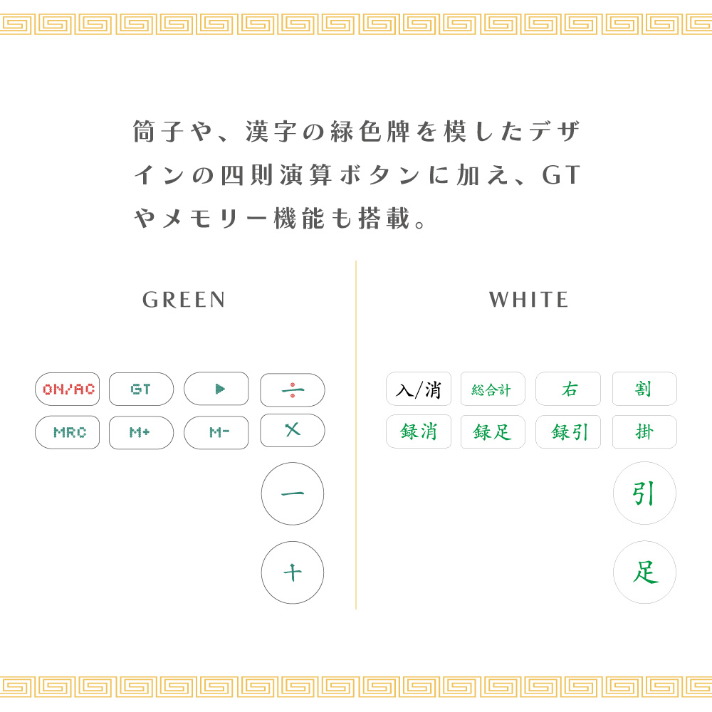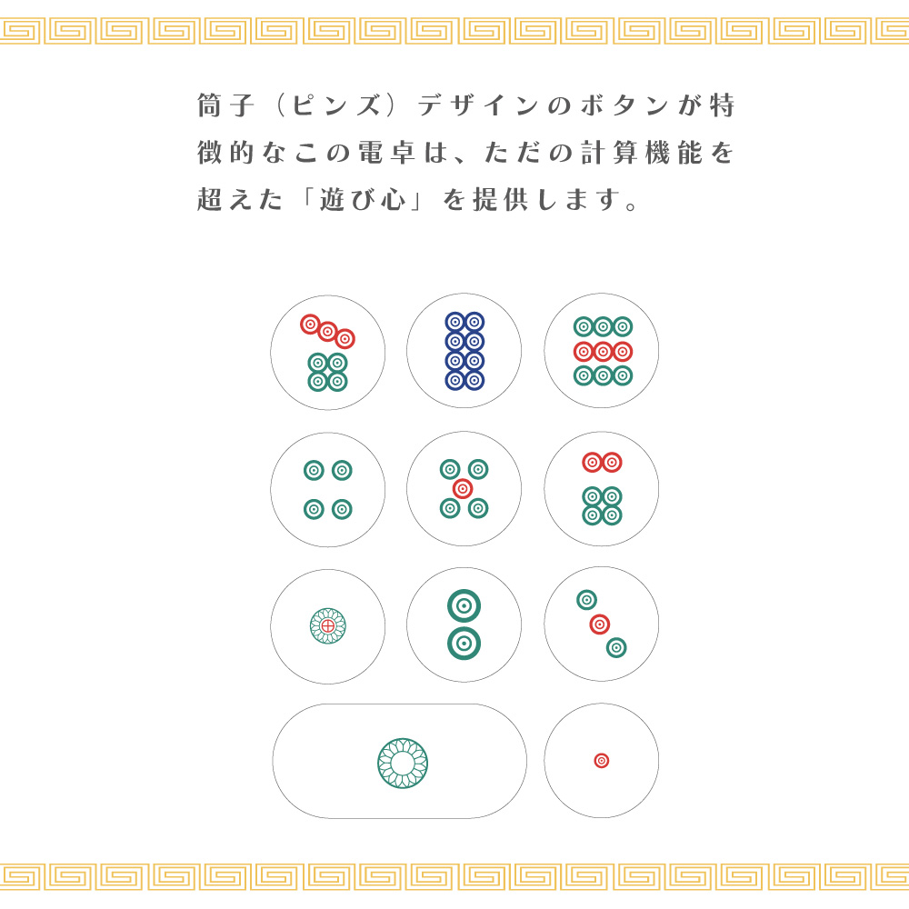 筒子(ピンズ)デザインのボタンが特徴的なこの電卓は、ただの計算機能を超えた「遊び心」を提供します。