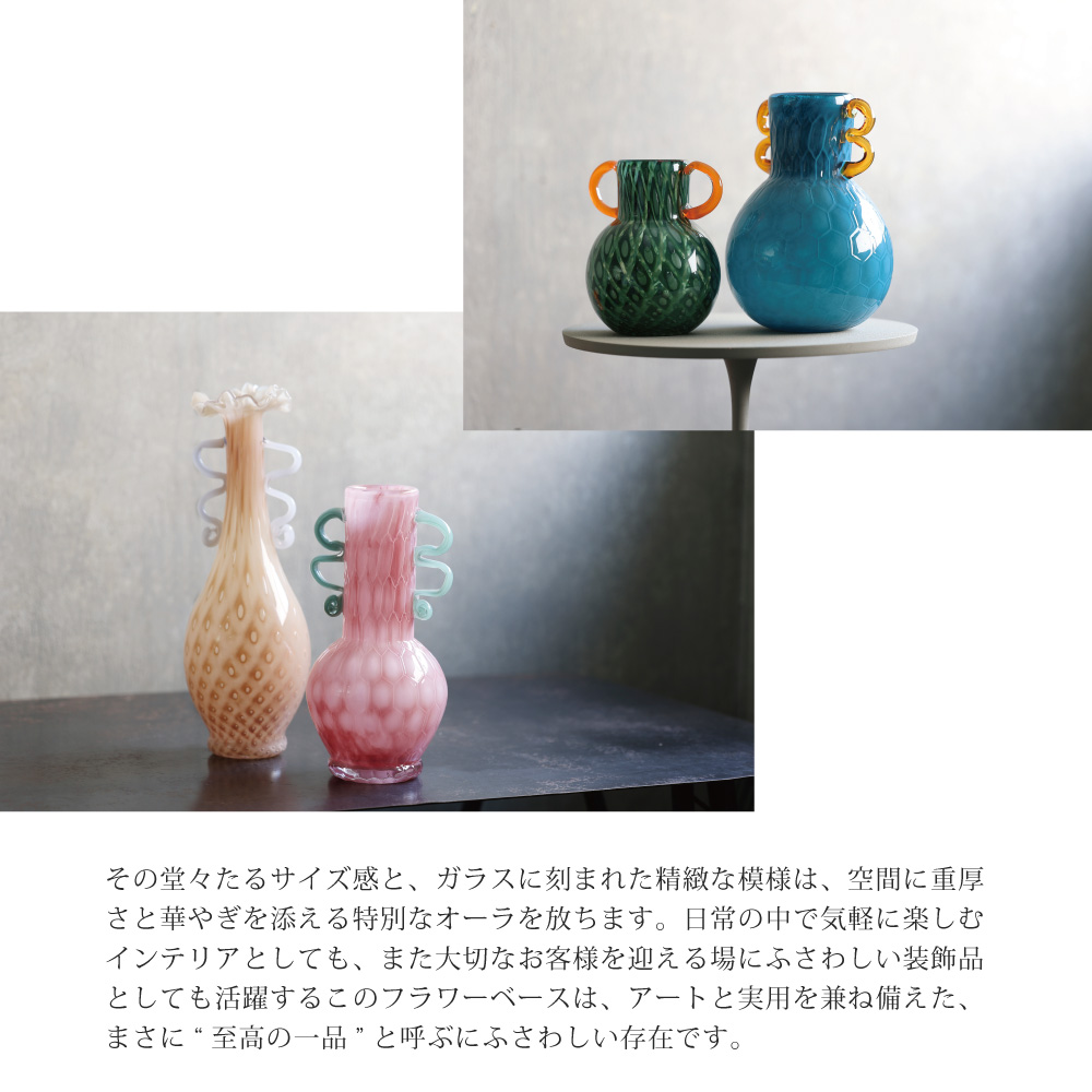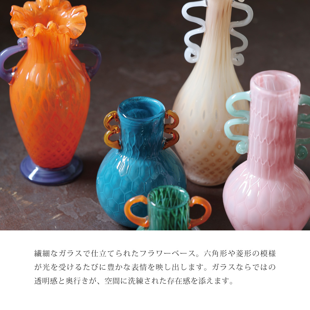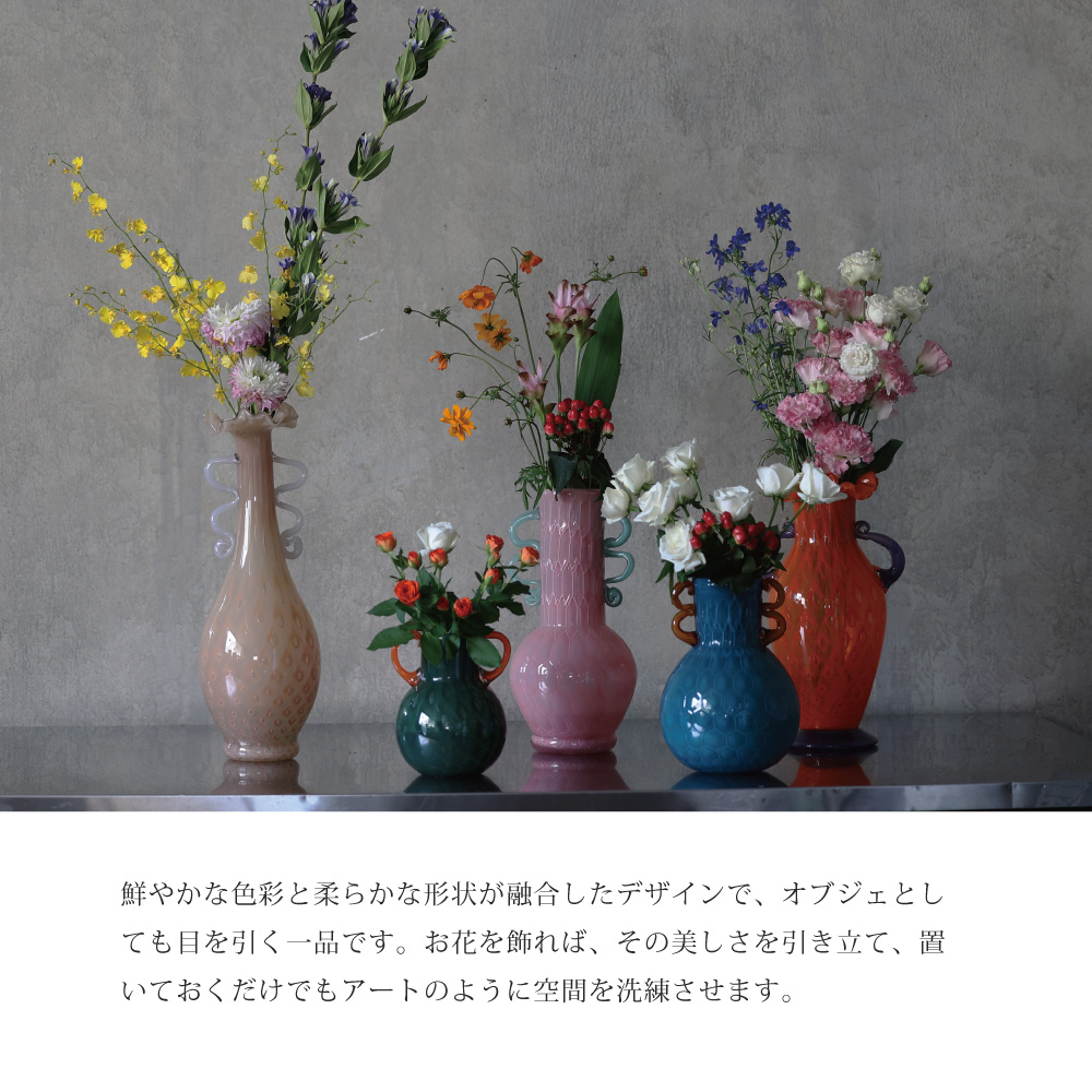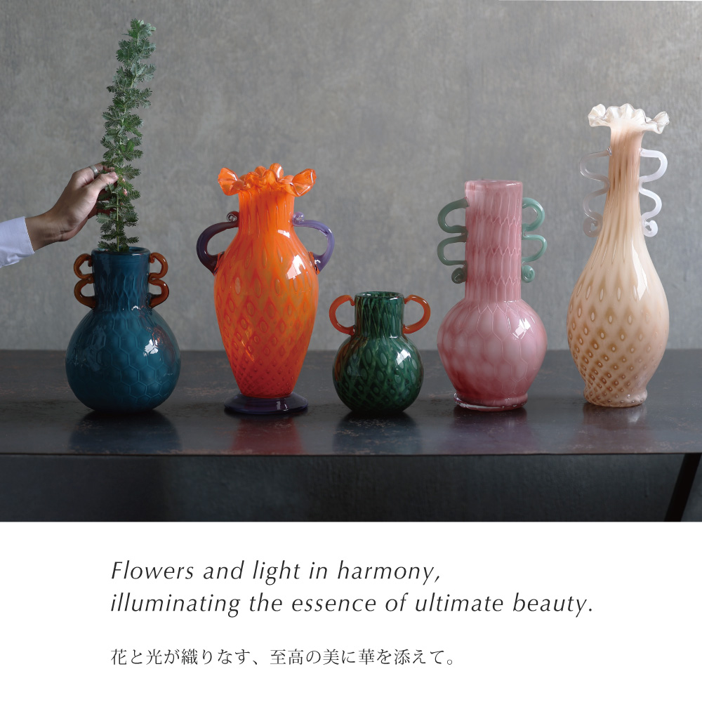 花を活けてもそのまま置いても美しいデザインのベース 色の組み合わせが絶妙で見る角度によって表情が変わります 特別な日にも何気ない日常にも