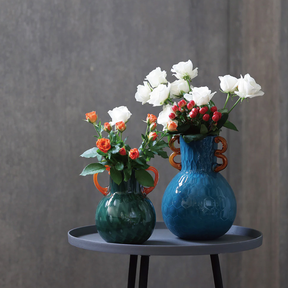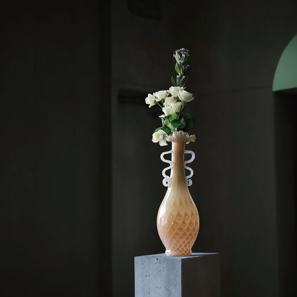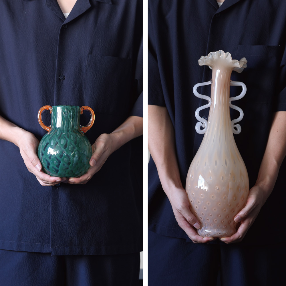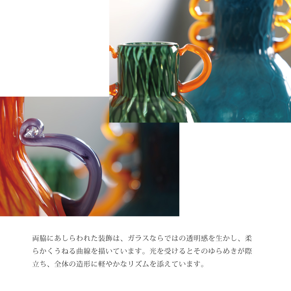 花を活けてもそのまま置いても美しいデザインのベース 色の組み合わせが絶妙で見る角度によって表情が変わります 特別な日にも何気ない日常にも