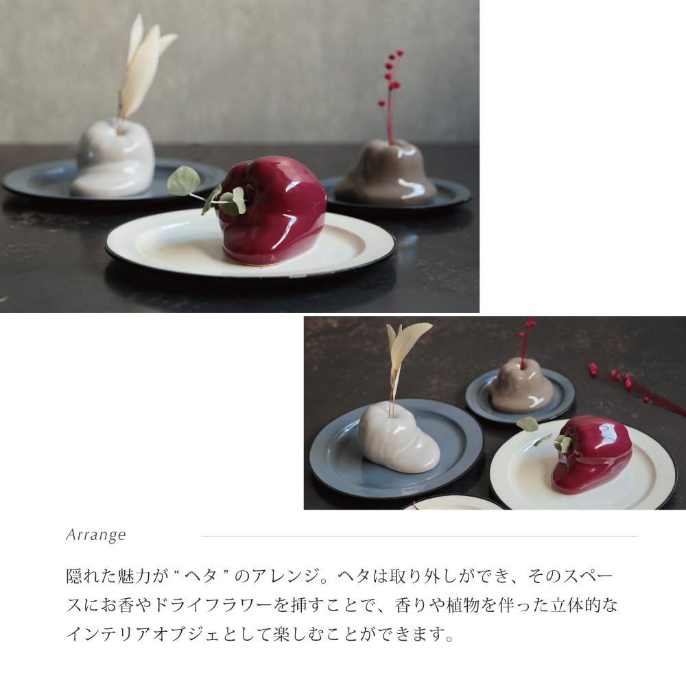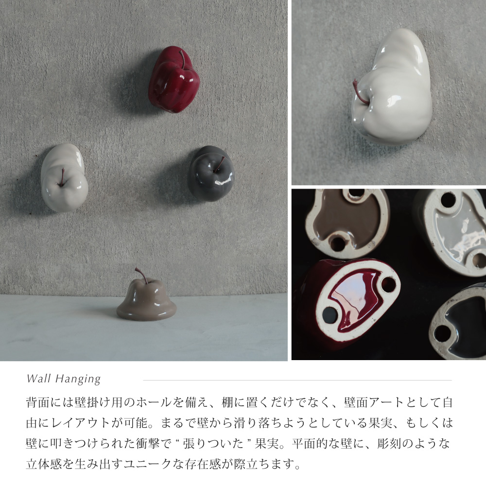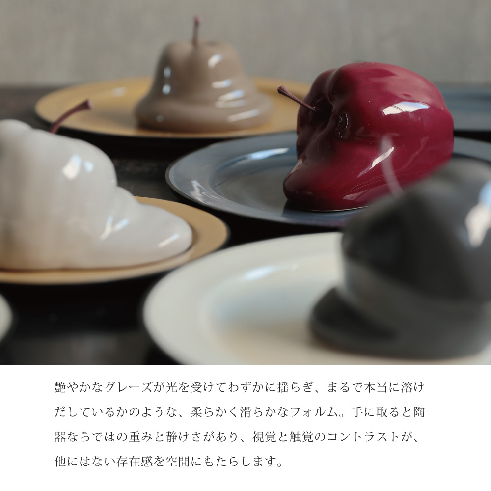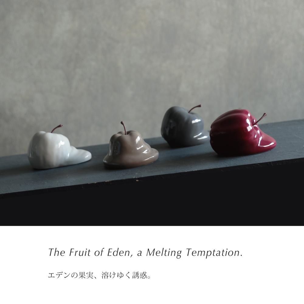 溶ける果実 - 時間と現実の狭間に佇むオブジェ 見慣れた果実が形を変え、静かに溶けていくような不思議な佇まい。 「りんご」という日常の象徴が、幻想的な姿へと変化するこのオブジェは、時間が止まった一瞬、もしくは異世界からの贈り物のよう。 艶やかな陶器の質感と独特のフォルムが織り成す違和感は、目を奪うだけでなく、心に小さな問いを投げかけます。 これは何?なぜ溶けているの?その問いかけが、新しい美しさを発見する鍵となるでしょう。| 生産地 | CHINA |
