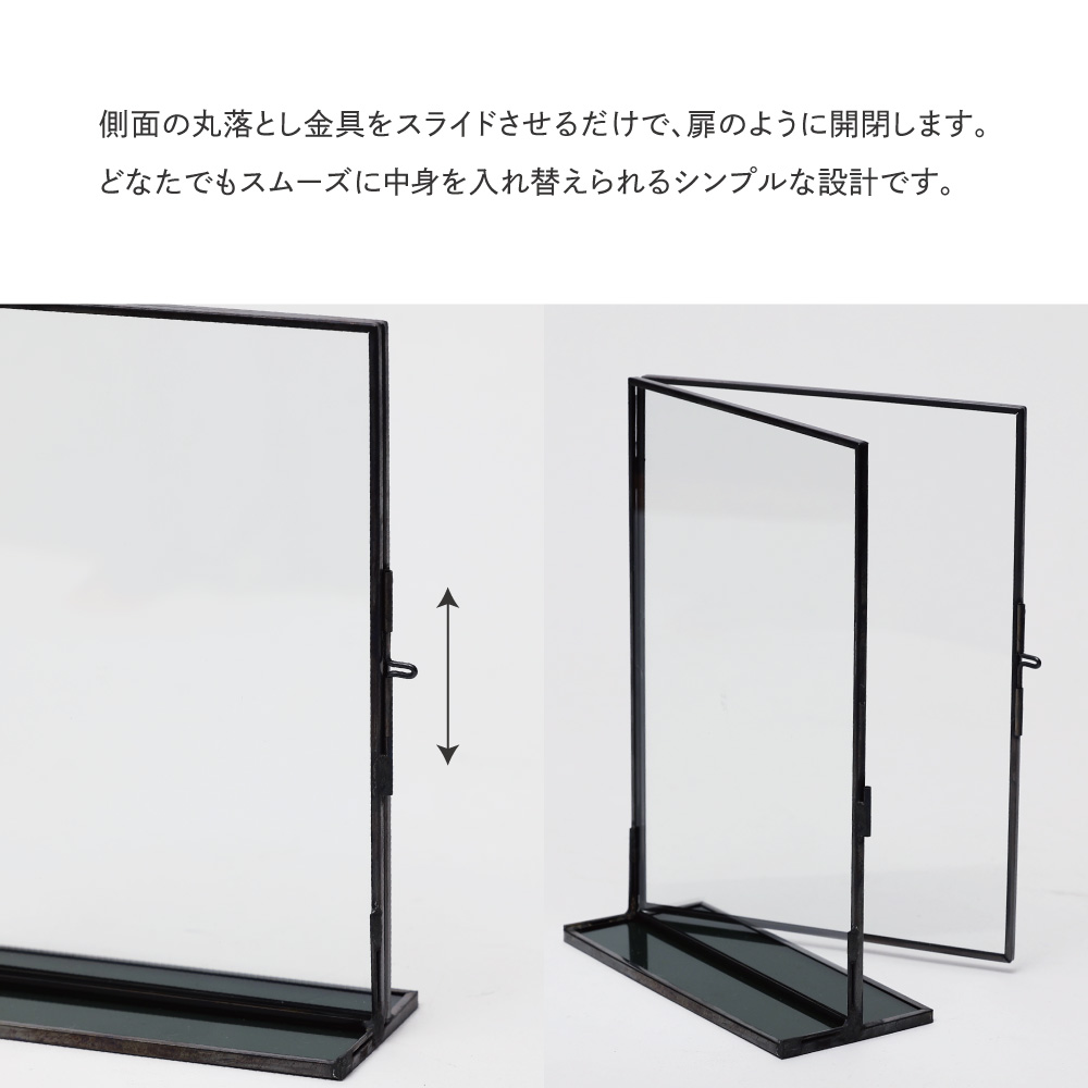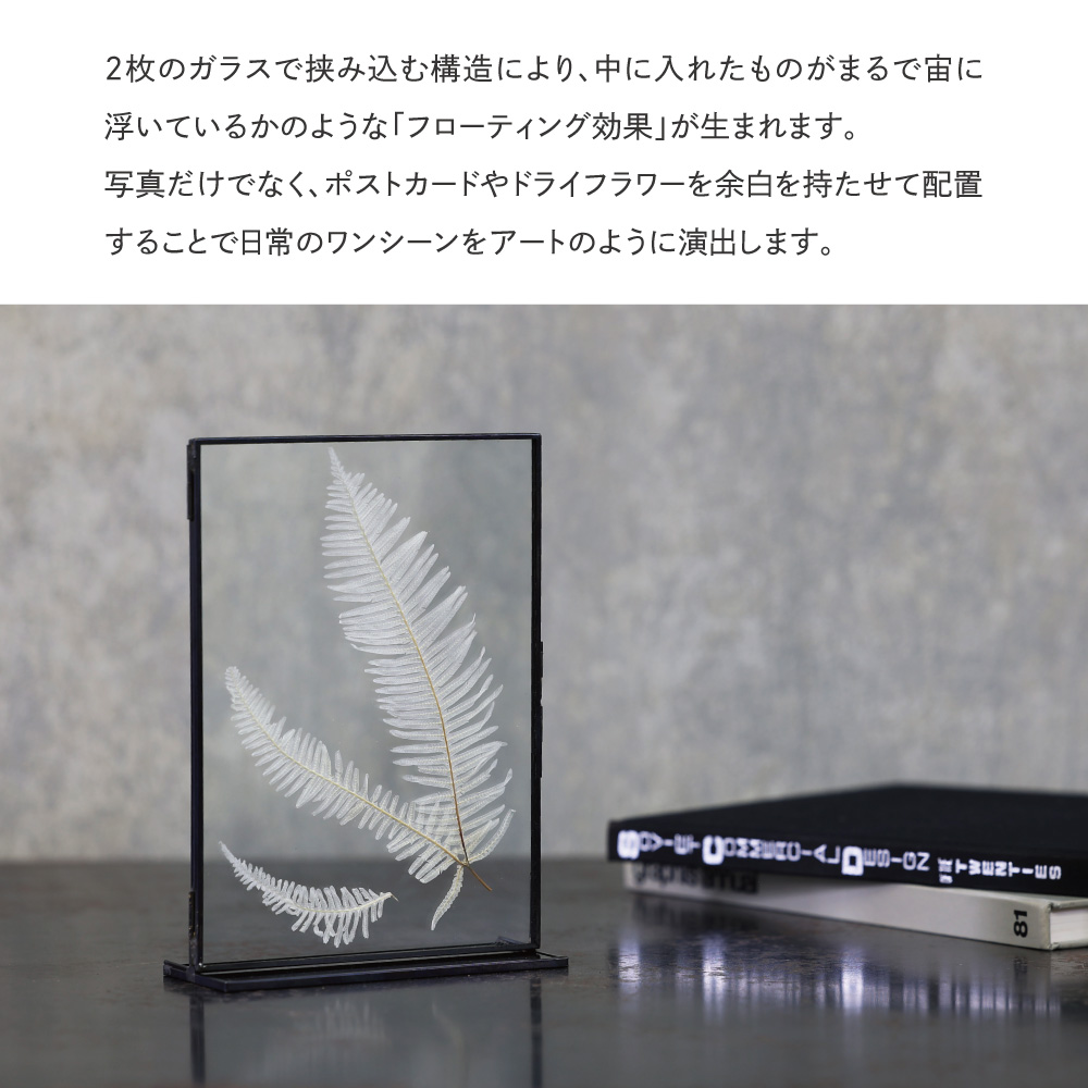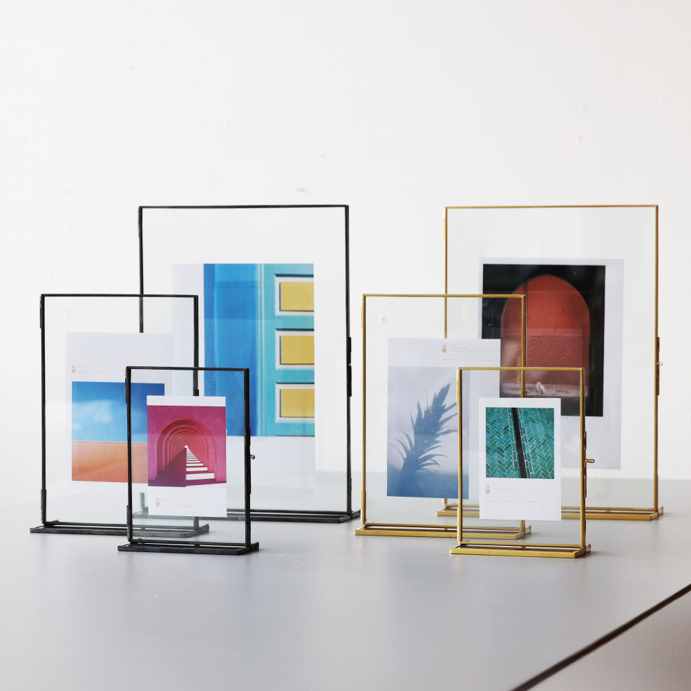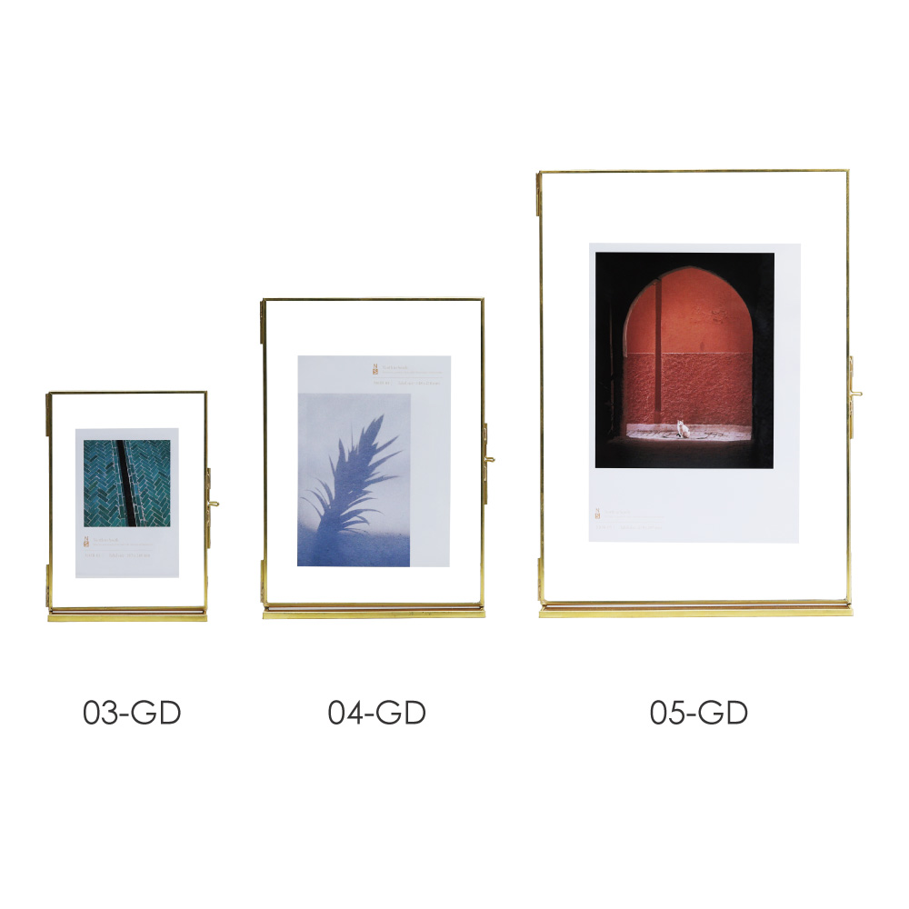 時を重ねるほどに味わいを増す真鍮と、凛とした透明感を放つガラス。二つの素材が織りなす静かな美しさが、飾るものにそっと寄り添います。写真やアートの余白までを引き立てる、クラシカルな佇まいのフレームです