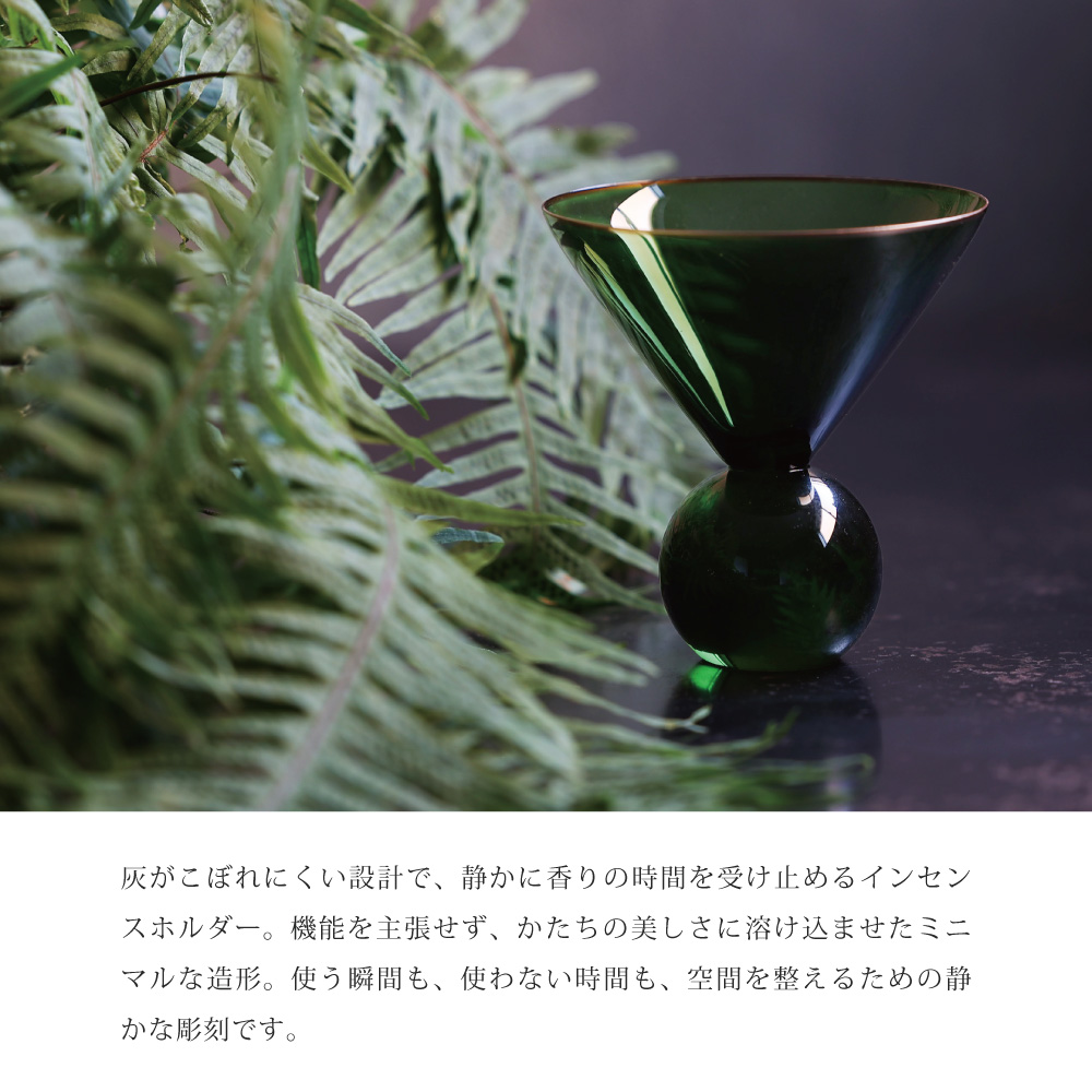お香を灯すと、ガラスの美しい透明感が炎を映し出し、幻想的な雰囲気を演出します。部屋全体に広がる香りが、心地よいリラックスをもたらします。clearはこちら