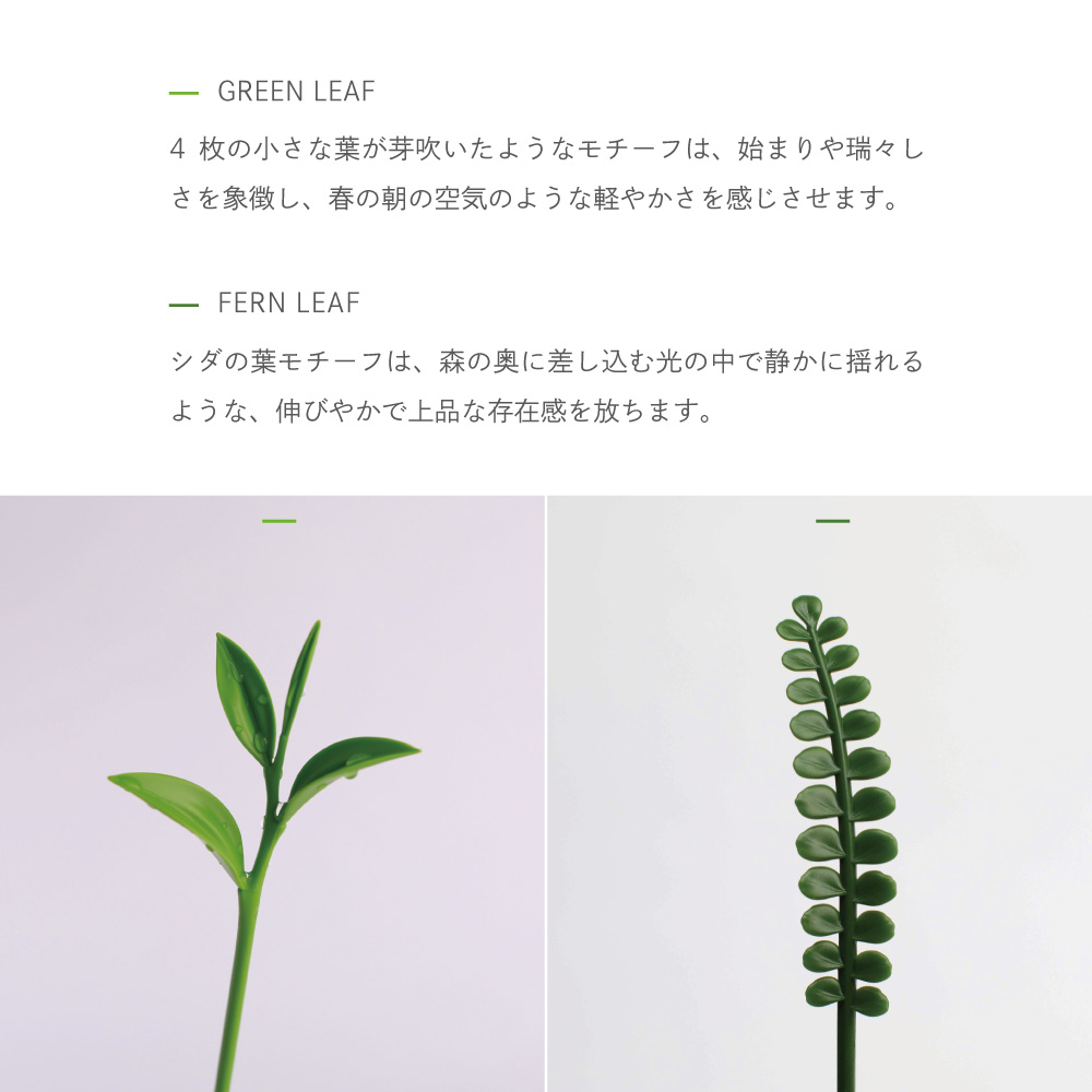 サイズ | (FERN LEAF)W20 x H218 x D20 mm / 4g (GREEN LEAF)W51 x H207 x D28 mm / 4g 内容量:3本入り |