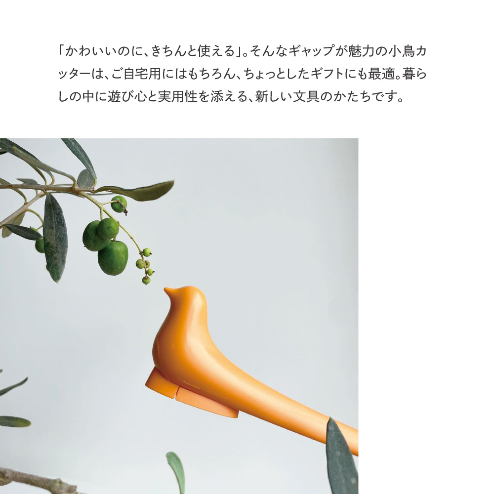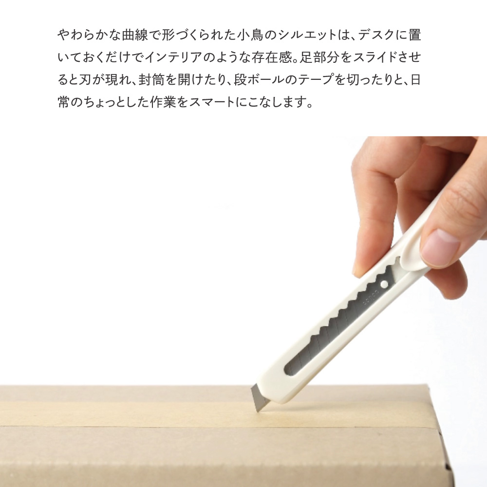 愛らしい小鳥のフォルムで、毎日の作業を楽しく。使うたびに癒される、可愛い鳥型のカッター。ちょっとした作業でも楽しくなるデザインで、気分を明るくしてくれるアイテムです。