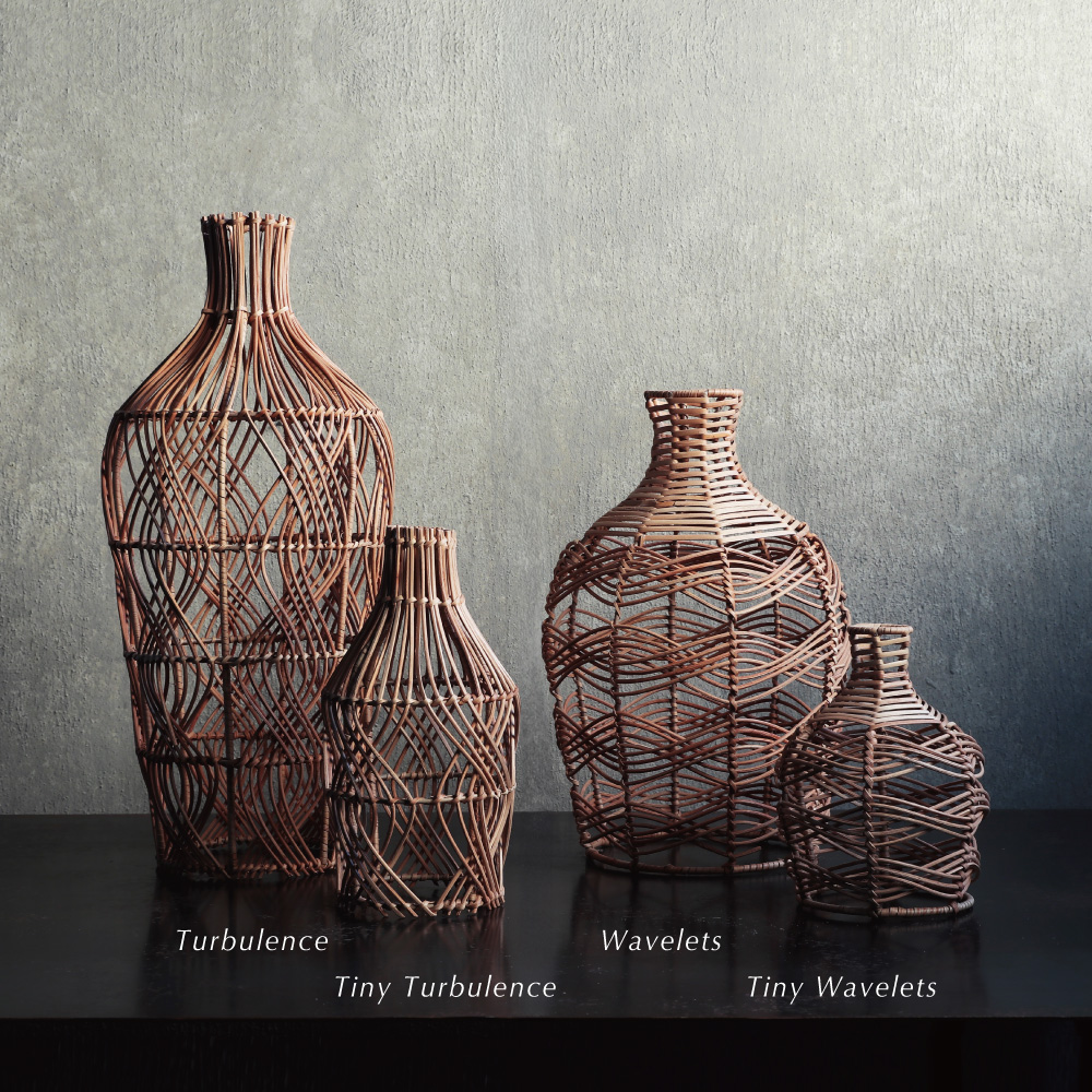また、もともとデザイン性の高い花瓶であれば、編み目の隙間から覗くフォルムや模様が絶妙に調和し、内と外で二重の美しさを楽しむことができます。