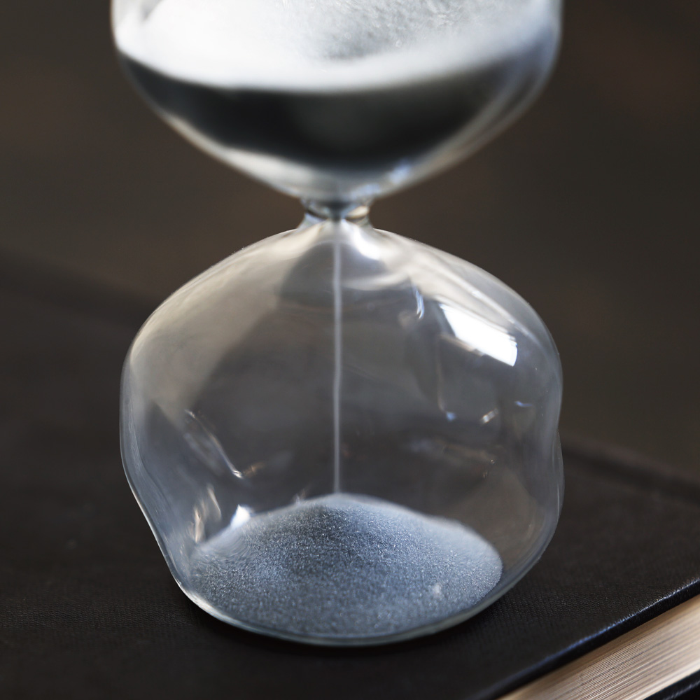 ガラスに、細かな砂が静かに流れる砂時計。