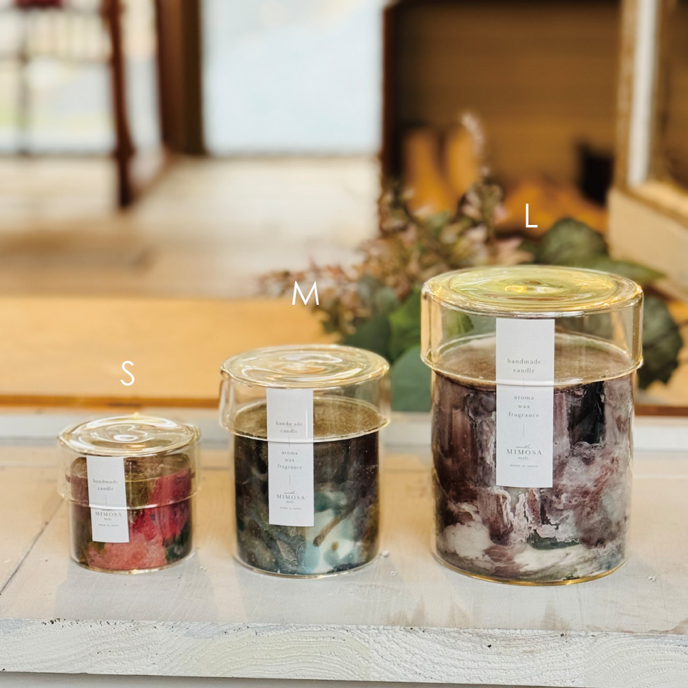 | サイズ | (S)φ5.5x6cm 燃焼時間:約12時間 (M)φ7x9cm 燃焼時間:約30時間 (L)φ9x12cm 燃焼時間:約60時間 |