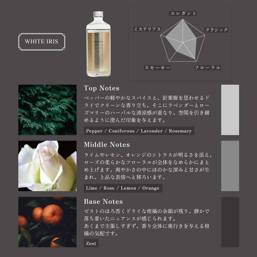清潔感と凛とした強さを併せ持つ、洗練されたホワイトアイリスの香り