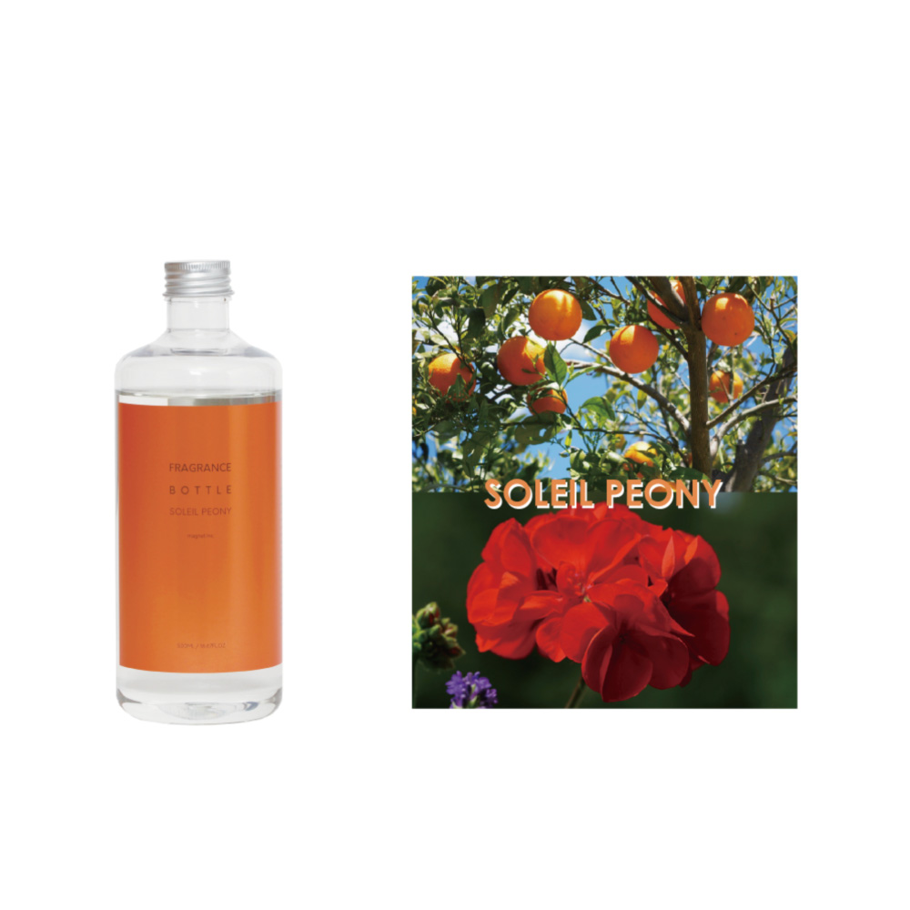 Bergamot、geranium、mandarinなど、軽やかなpeonyの香りをブレンド